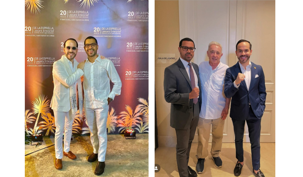 Izquierda: Abelardo de la Espriella y Alexandrer Tarazona. Derecha: Alexander Tarazona, Álvaro Uribe y Abelardo de la Espriella