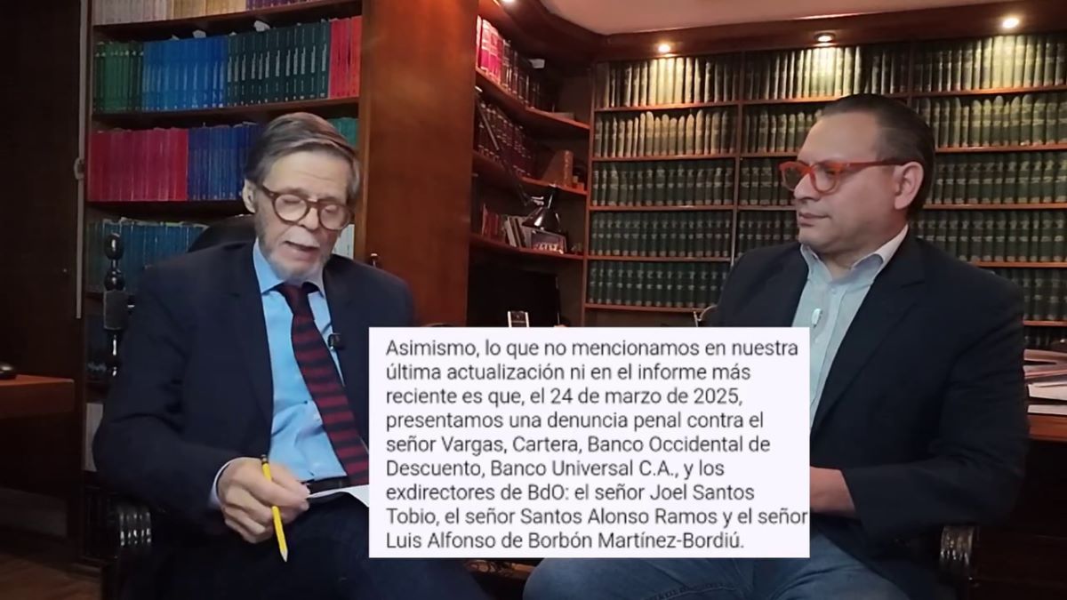La acción judicial, un misil directo a la línea de flotación del entramado empresarial, apunta sin rodeos a las más altas esferas del grupo. En el centro de la diana se encuentra Víctor José Vargas Irausquín, señalado como el beneficiario final de toda la operativa. Junto a él, la denuncia incluye a sus empresas instrumentales, Cartera de Inversiones Venezolanas C.A. y el Banco Occidental de Descuento (BOD), así como a los exdirectores del BdO que ejecutaron las decisiones: Joel Santos Tobio, Santos Alonso Ramos y el aristócrata Luis Alfonso de Borbón Martínez-Bordiú.