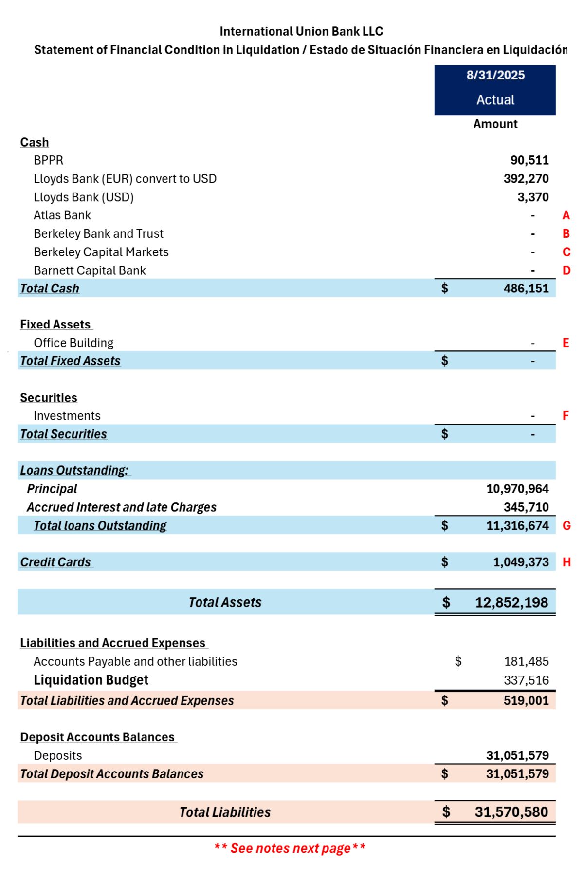 La esperanza de los clientes del malogrado International Union Bank LLC (IU Bank) recibió un duro golpe reciente. En un comunicado fechado el 30 de septiembre de 2025, la firma liquidadora, Driven, P.S.C., confirmó el sombrío panorama que enfrentan los depositantes y acreedores: actualmente, la entidad no dispone de los fondos necesarios para realizar distribución alguna.