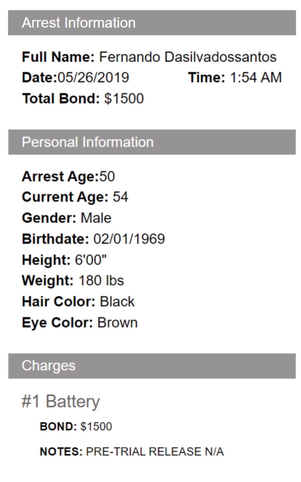 En aquel entonces, se le fijó una fianza de $1500, negándosele la posibilidad de una liberación previa al juicio, lo que insinúa la gravedad de la ofensa. Aunque no se conocen detalles sobre la resolución del caso, se especula que Da Silva Dos Santos pagó la fianza y recuperó su libertad días después de su detención, manteniendo un cauteloso silencio sobre el asunto. Sin embargo, en los registros de la Policía de Miami Dade permanecen archivados fotografías y registros de ese incidente, que colide con la enseñanza y los valores católicos que se profesan en la UCAB.