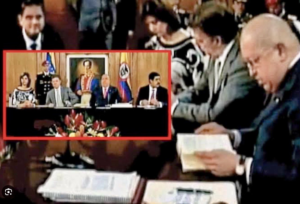 En el acto estuvieron presentes los presidentes Juan Manuel Santos y Hugo Chávez, así como el entonces canciller Nicolás Maduro.