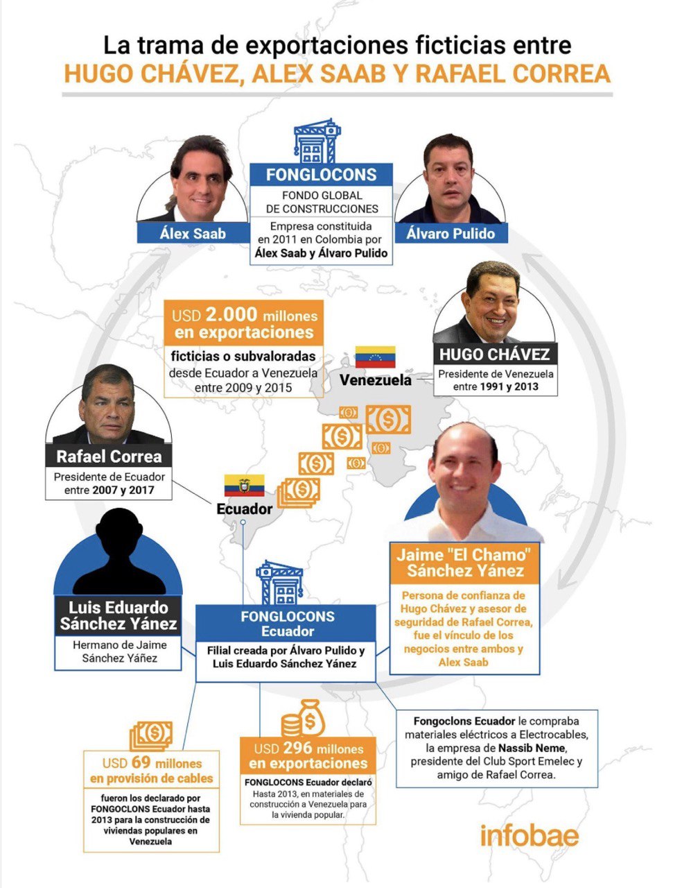 Una investigación se inició en 2013 en Ecuador, solicitando la detención de Álvaro Pulido (socio de Alex Saab, actualmente preso) por un escándalo de corrupción relacionado con su empresa Fondo Global de Construcción de Ecuador (Foglocons), constituida el 2 de octubre de 2012 por Álvaro Pulido y Luis Eduardo Sánchez (hermano de Jaime Sánchez Yáñez, asesor de seguridad del expresidente Rafael Correa). Todos fueron señalados con vínculos al tráfico de drogas.