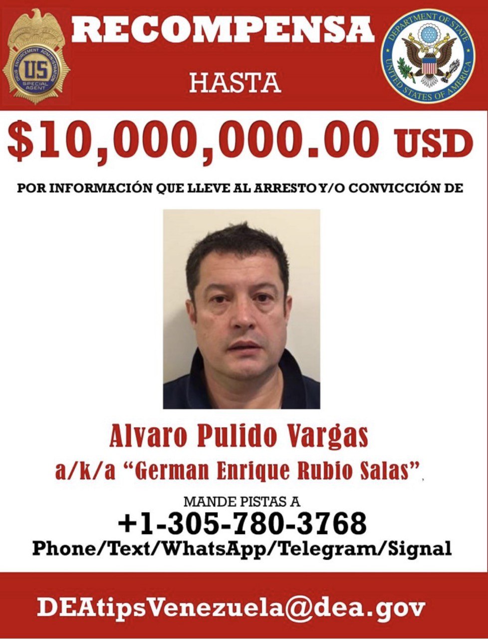 Germán Enrique Rubio Salas figura en informes judiciales y periodísticos como narcotraficante convicto. Una noticia publicada por el diario colombiano El Tiempo en mayo de 2000 lo identificó como “jefe del Cartel de Bogotá”.