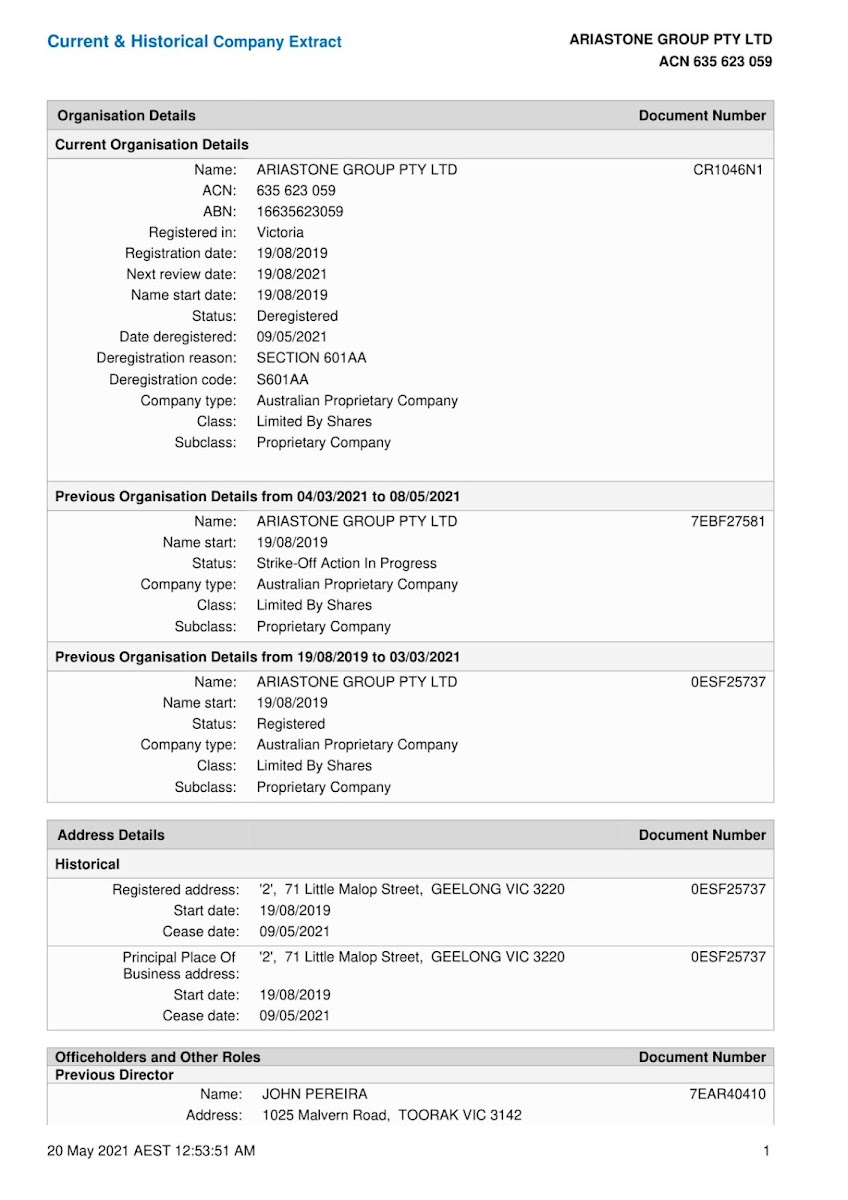 Hernández Chacón y Perozo Urdaneta formaron parte de la empresa Ariastone Group Pty Ltd, constituida en Australia en septiembre de 2019, ocho meses después de que Estados Unidos sancionara a la estatal Petróleos de Venezuela (Pdvsa) e impidiera al gobierno de Nicolás Maduro comercializar crudo y hacer operaciones financieras en la banca extranjera, reseñó El Publique.