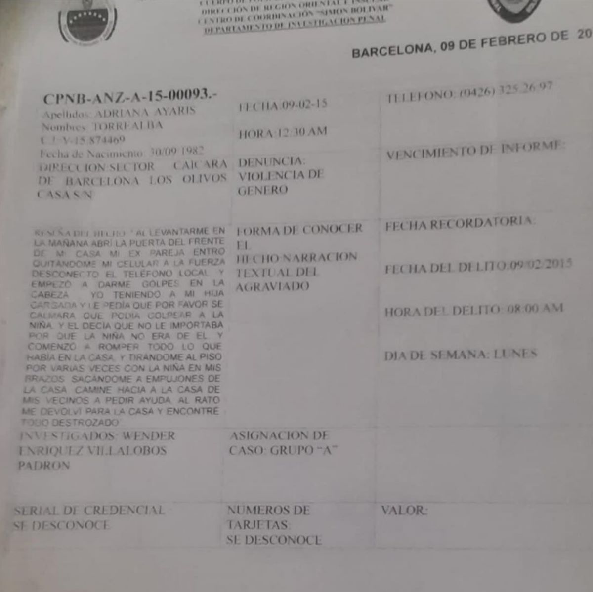 Denuncia de Adriana Torrealba contra Wender Villalobos en Venezuela por violencia de género