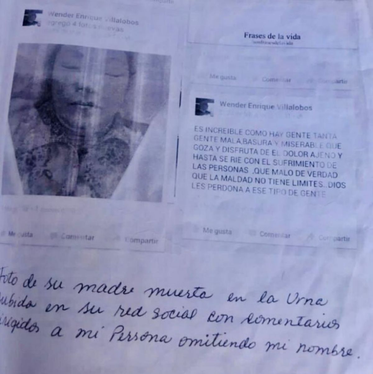 Denuncias de Adriana Torrealba incluye fotografía que Wender Villalobos le enviara, de la madre del youtuber en el ataúd.