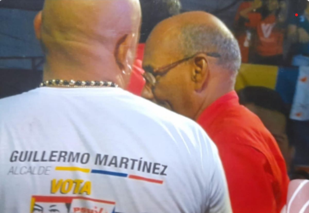 Wender Villalobos (de espalda), porta franela alusiva al entonces candidato a alcalde oficialista Guillermo Martínez. Junto a él, el ahora fallecido Aristóbulo Isturíz, exgobernador de Anzoátegui por el oficialismo.