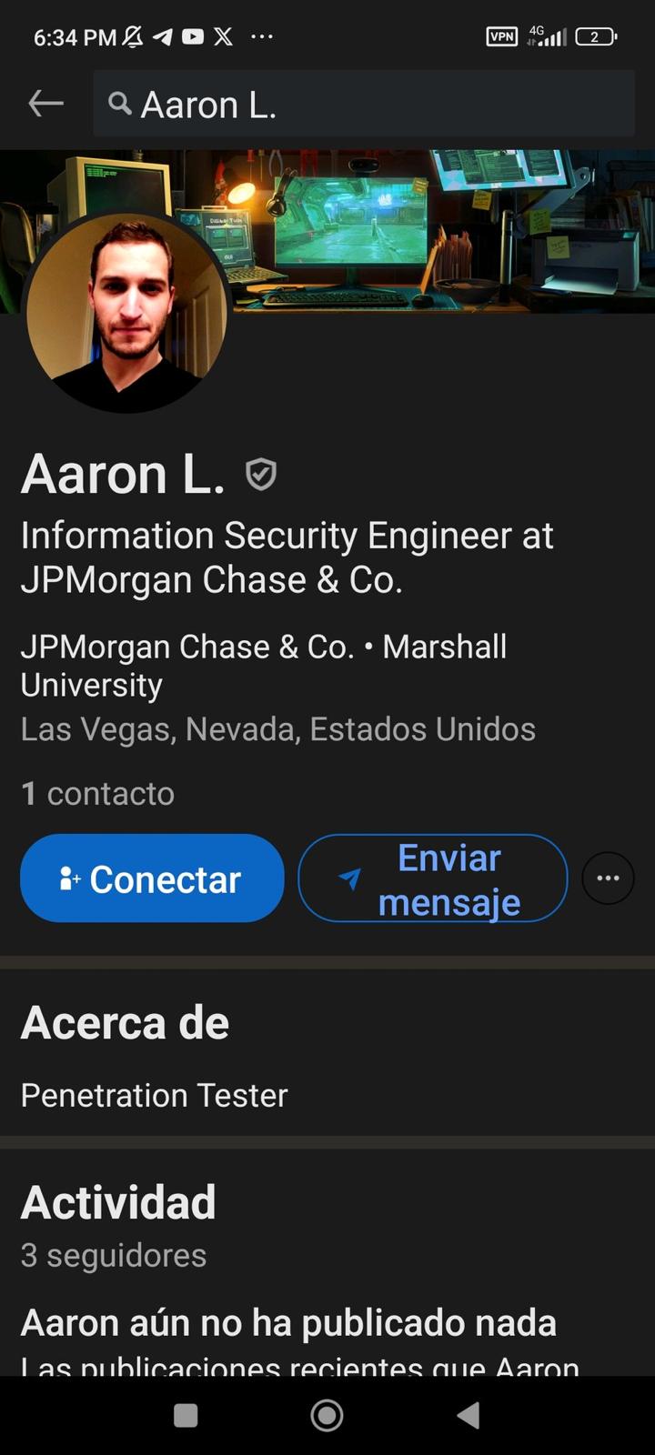 El área específica de trabajo de Aaron Logan se llama «penetration test», es decir, pruebas de penetración para identificar los puntos vulnerables en la seguridad de cualquier sistema informático. Sus empleos anteriores también estuvieron relacionados con la seguridad.