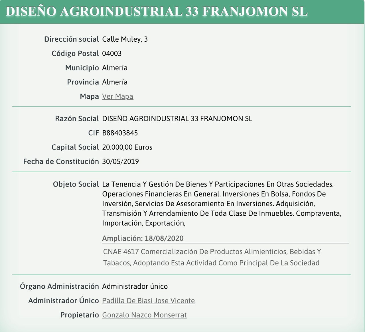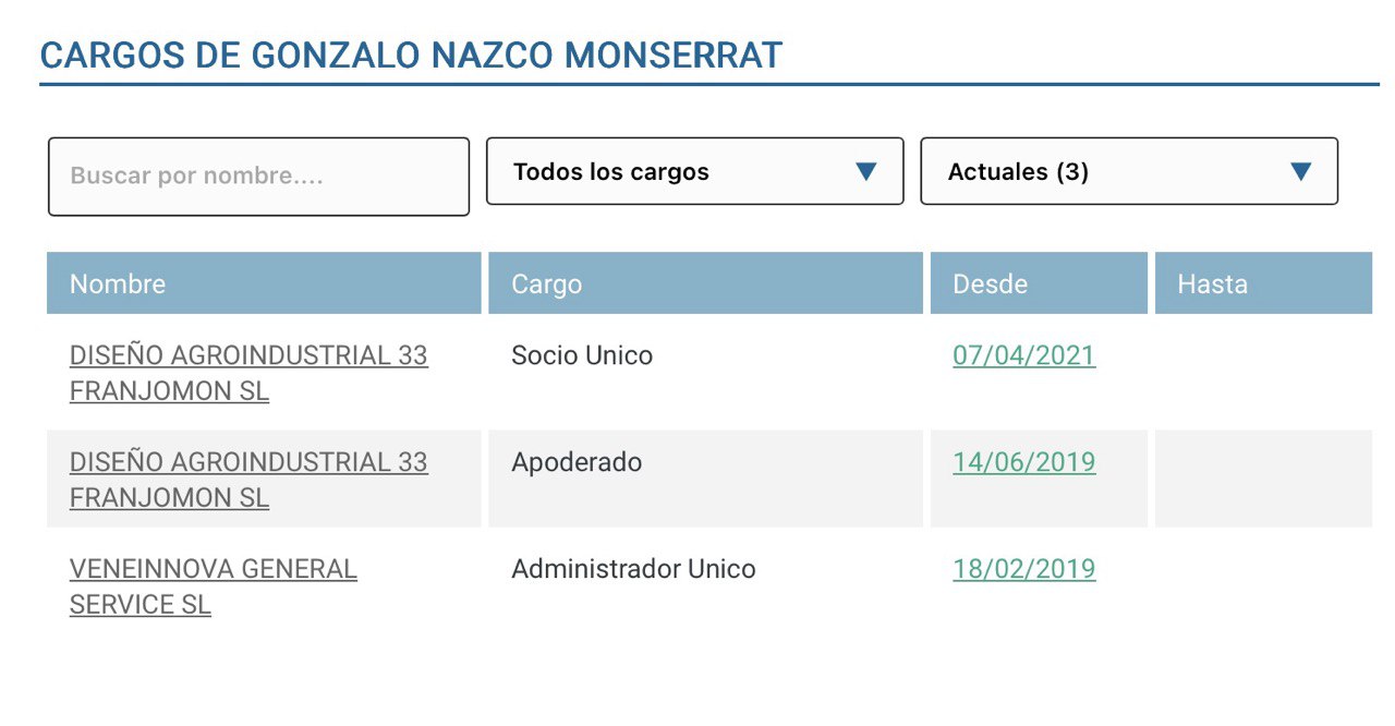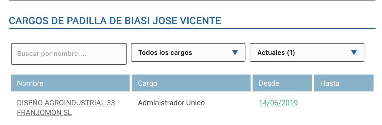 José Vicente Padilla De Biasi aparece vinculado, al menos, a dos empresas en España, junto a su cónyuge Monserrat Gonzalo Nazco.
